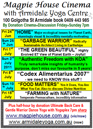 Special Spiritual Cinema program organised in nearby Armidale NSW 24th June to 15th July 2011:
