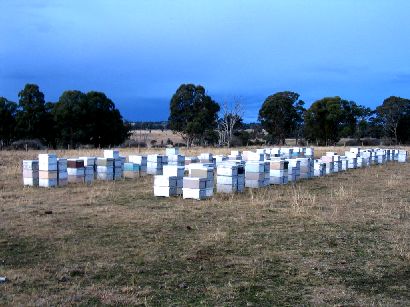 The Sh... Brigade taking a break....................Dusk over local hives, fabulous bee country.