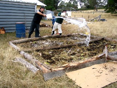 Rear of shearing sheds near homestead, rich dark soil, lots of worms.