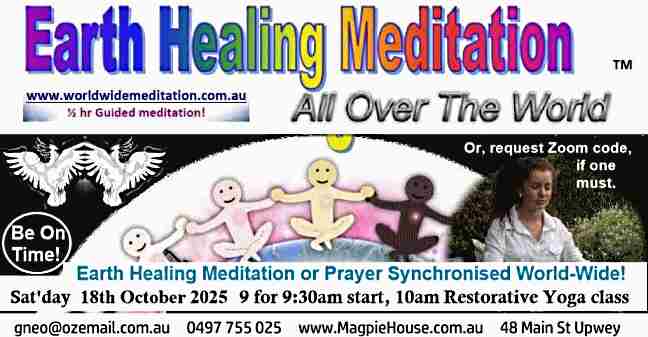 Earth Meditation annual global event Brings Peace! Studio, or Zoom.