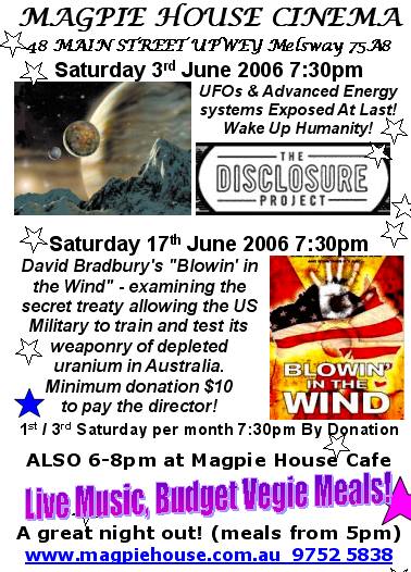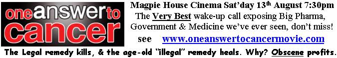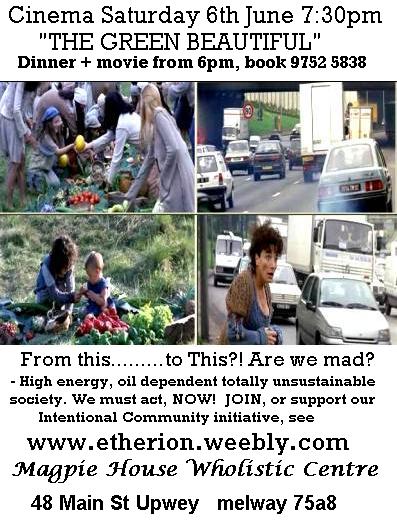 1. Sat 12th June Cinema "The Best Diet on Earth" for spectacular weight loss & conquering disease. Meals & open-stage music from 6pm, 7:30pm entry By Donation, discussion follows. Concludes our Diet Triple cinema, but also see the pickings below.
