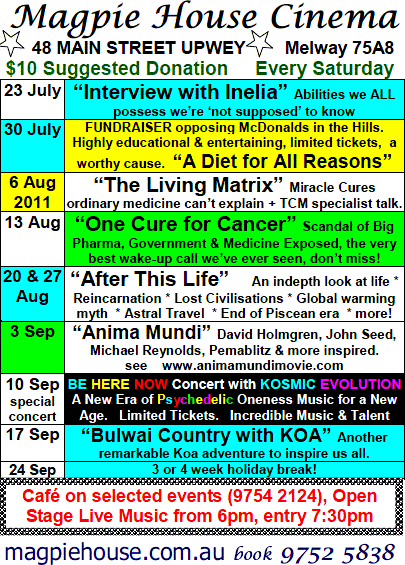 Cinema Armidale NSW, NOT Magpie House Upwey! See you there?