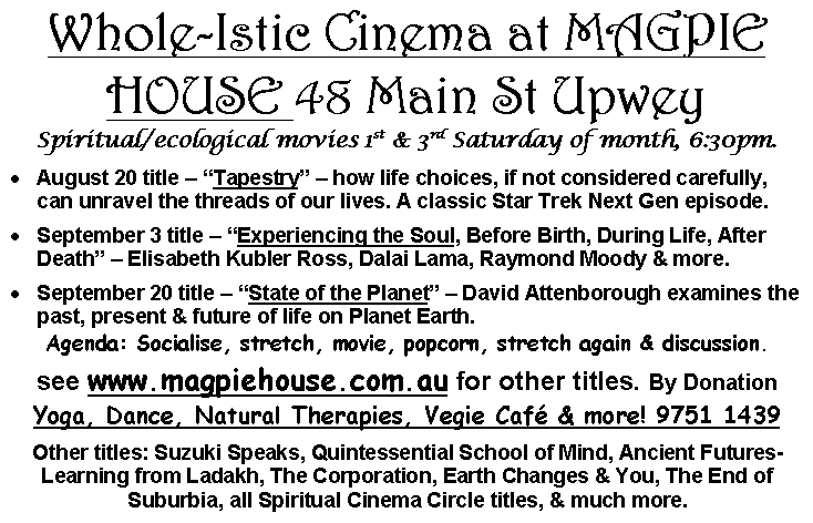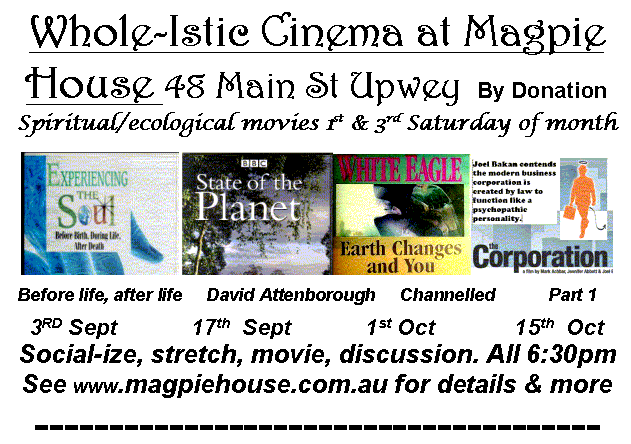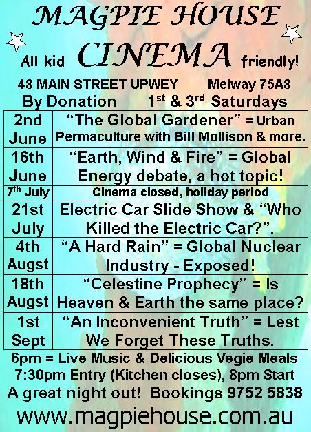 10. More Cinema - see poster below - YogaPlex Yoga Term Specials & a fantastic Permaculture Revolution Design Course for the September school holidays.