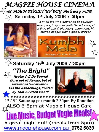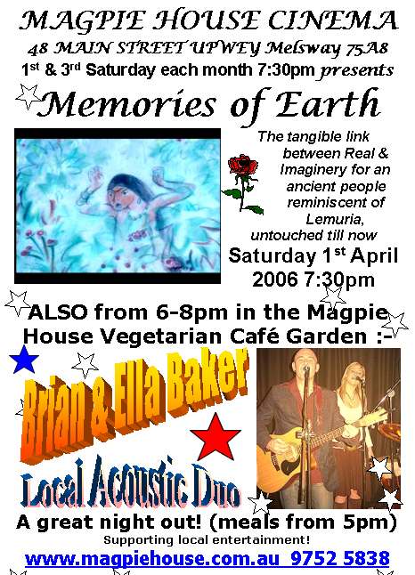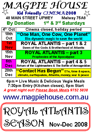 Saturday 19th March Cinema presented by Nikolas Kavelanka, Australia's Damanhur contact. Secrets & mysteries of this extraordinary society of inventors, artists & thinkers who may hold the key to the future of mankind.