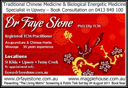6. Friday 13th August Combining Traditional Chinese & New Age Biological Energetic Medicine Health Lecture, no needles life frequency analysis & demonstrations. By Donation, book 03 9752 5838.