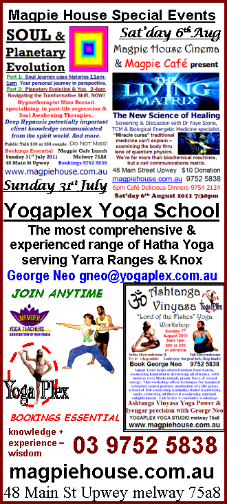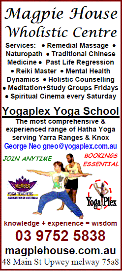 Another sensational season of Body, Mind & Spirit events with Magpie House & Yogaplex - term begins this week, the most comprehensive & experienced Hatha Yoga serving Yarra Ranges & Knox.
